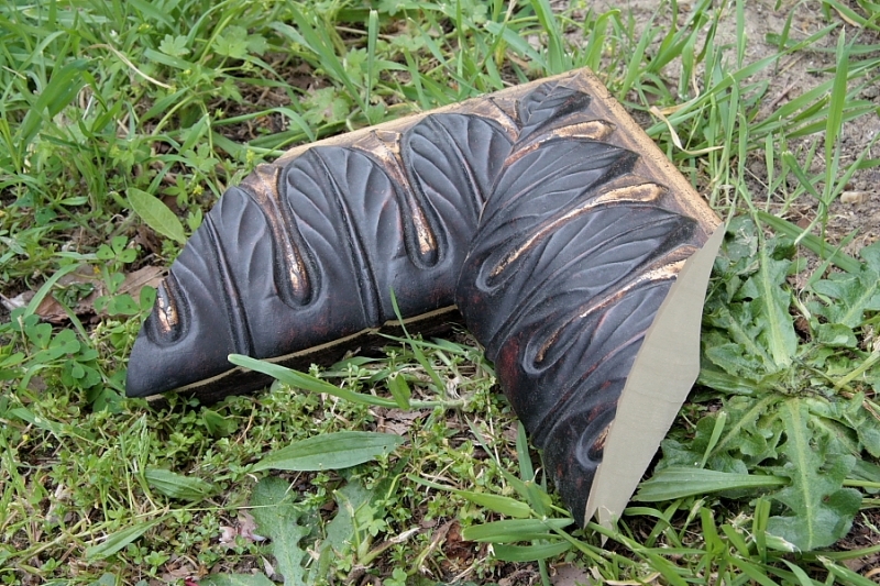 Baguette de cadre Bois foncé antique sculpté main rehauts or 110X68 mm