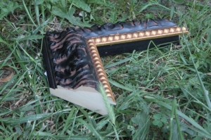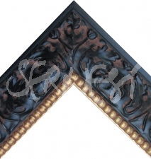 Baguette de cadre Noir patiné inversé nez perlé doré 83X47 mm