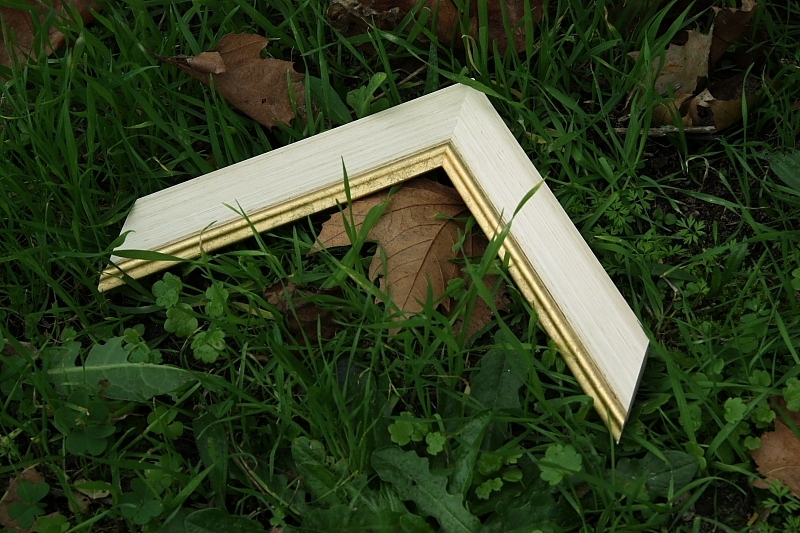 Baguette de cadre Marie-louise inclinée ivoire strié nez doré 30X20 mm